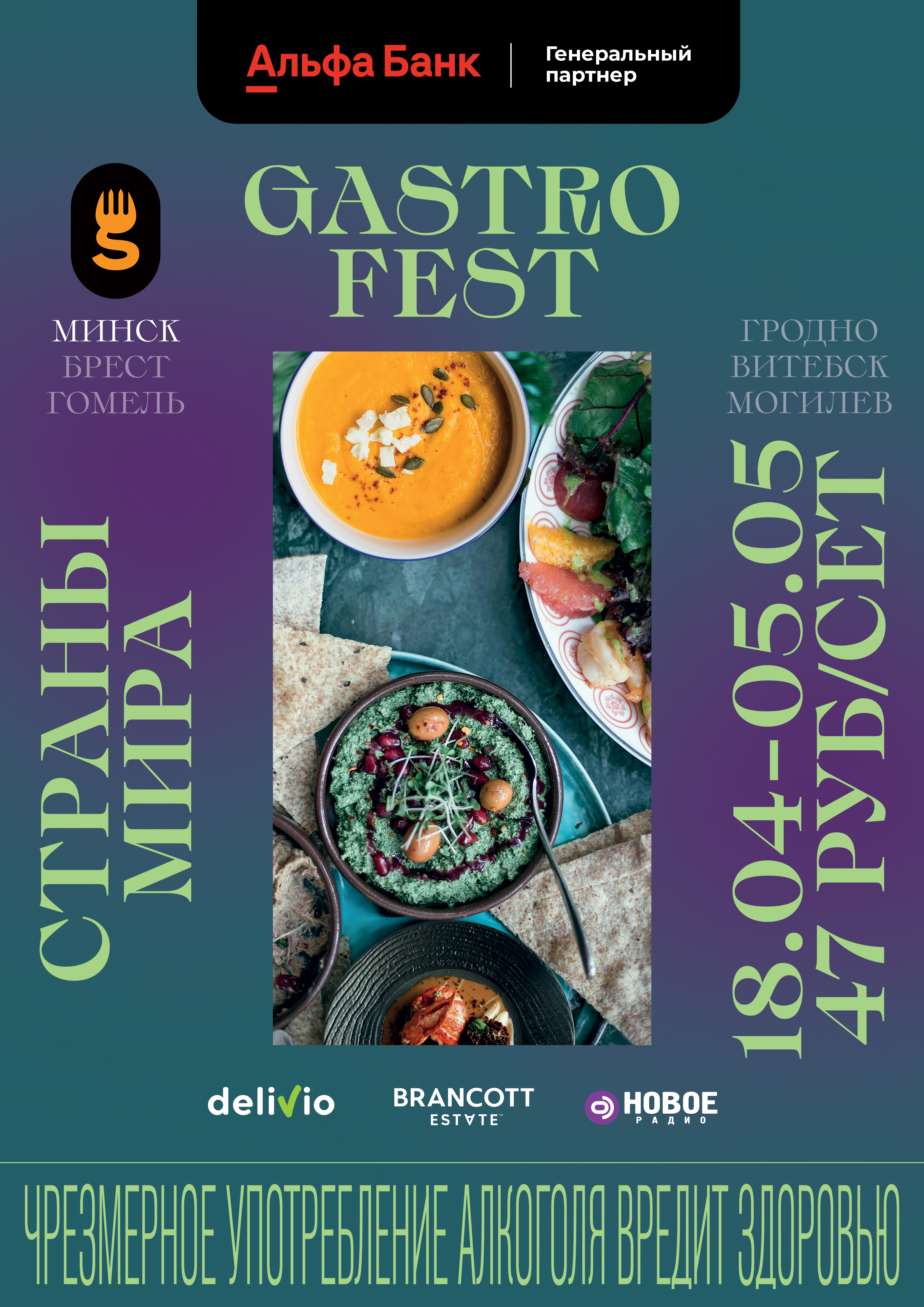 Генеральным партнером выступает Альфа Банк Беларусь. По традиции гостей Гастрофеста ждёт приятный сюрприз от банка – повышенное количество бонусов, которые начислятся каждому, кто оплатит сет картой Альфы. Бонусы можно конвертировать в манибэк, оплатить услуги в ЕРИП или потратить на услуги банка. Подробности о специальном предложении в ближайшее время появятся в Instagram-аккаунте Альфа Банк.