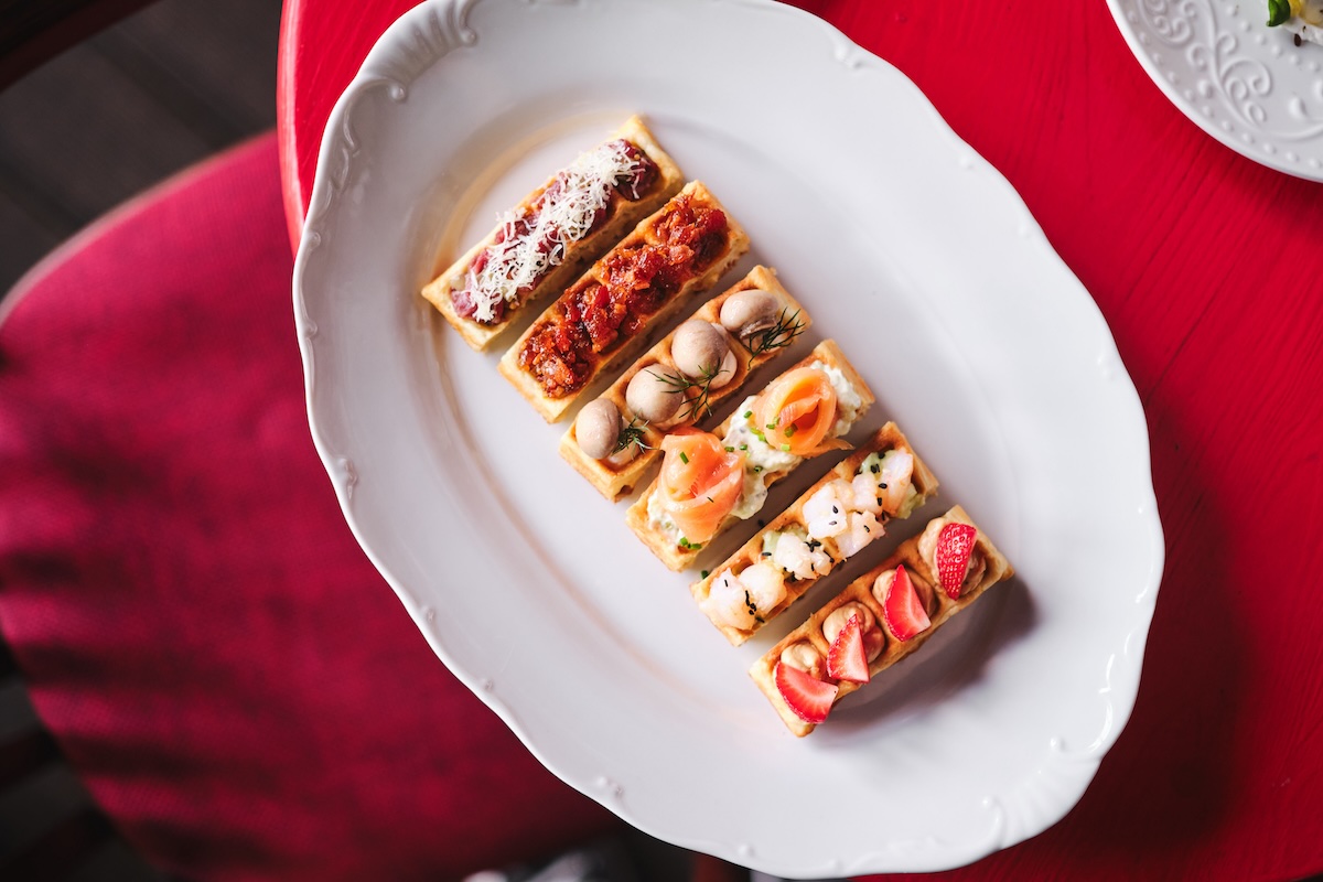 - - сладкая мини-вафля с творожным кремом со сгущёнкой и свежей клубникой