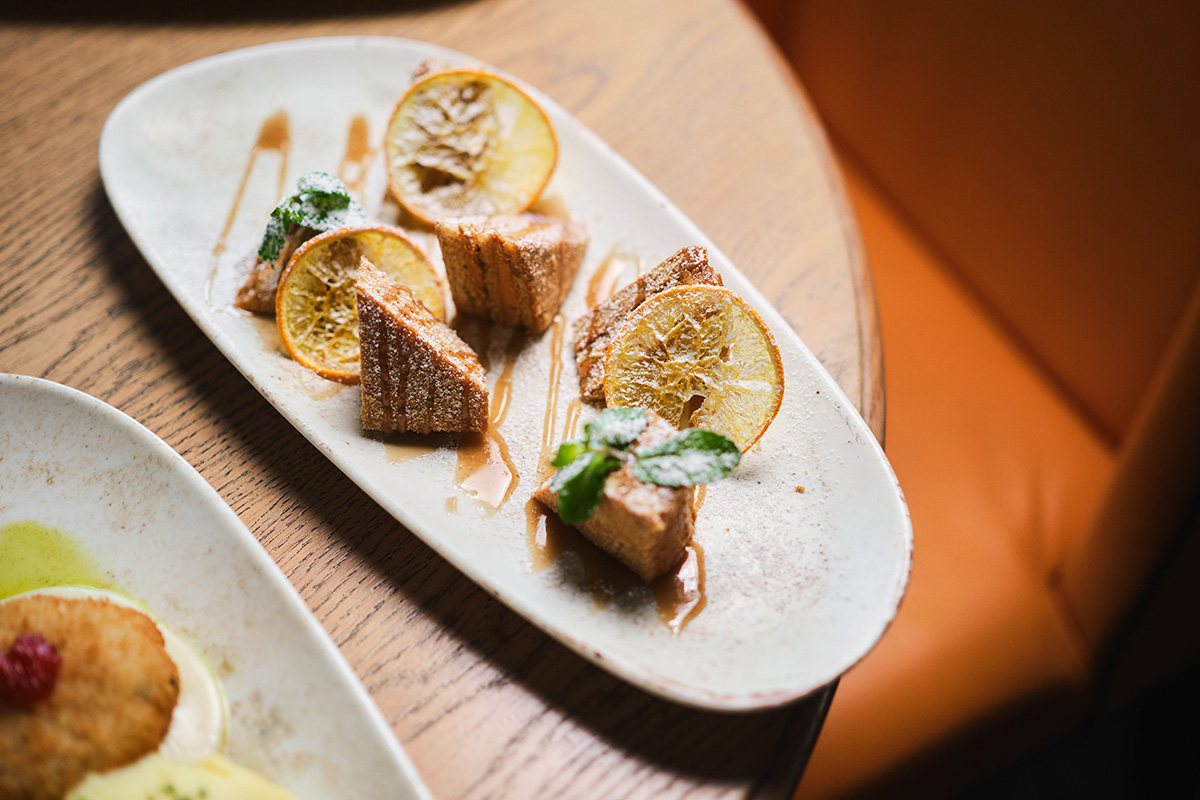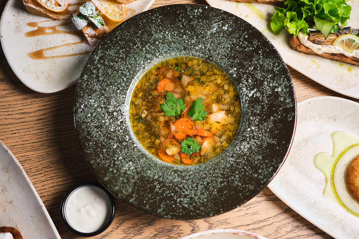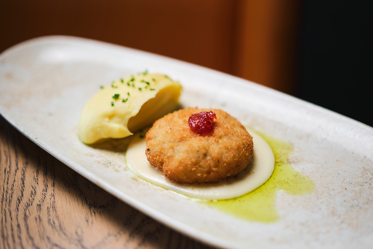 - Котлета щучья с картофельным кремом и берёзовым соусом
