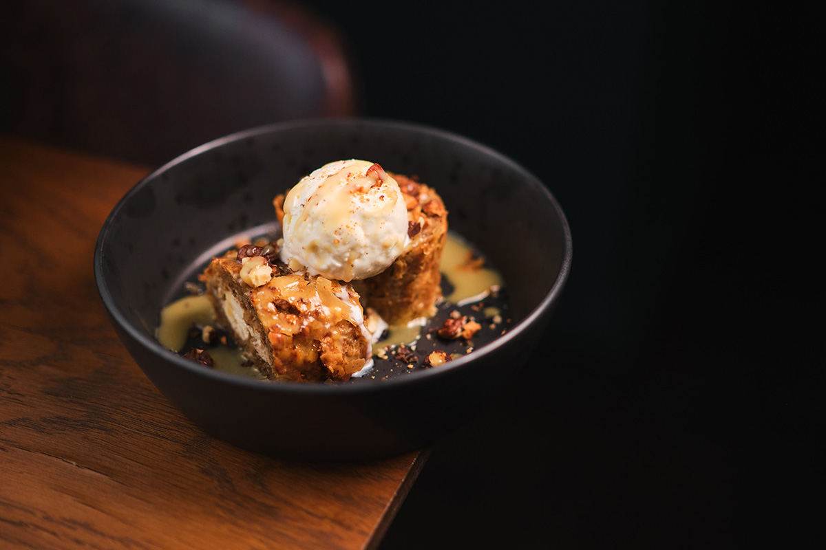 - Кнафе с ванильным пломбиром (катаифи, сыр фета, орехи, сироп, ванильный пломбир)