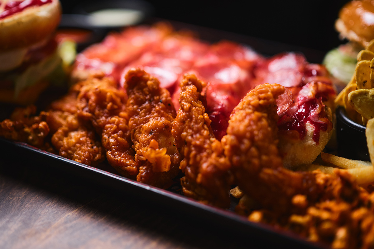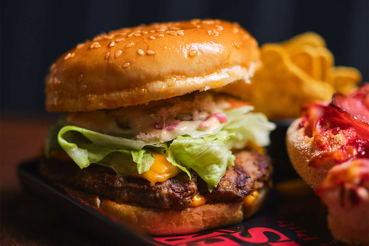 - Benny’s burgers (крафтовая булочка, сочная говяжья котлета, фирменный соус Бургер, сыр чеддер, свежий томат, листья салата, маринованный огурчик, сырный соус)
