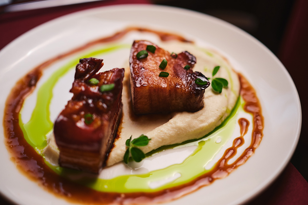 - Карамелизированная свиная грудинка по-гасконски, томленная в темном эле (3 сезон 14 серия, где Максим Лавров хотел накормить свиной грудинкой кавказцев, говоря при этом «превосходная свинина»)