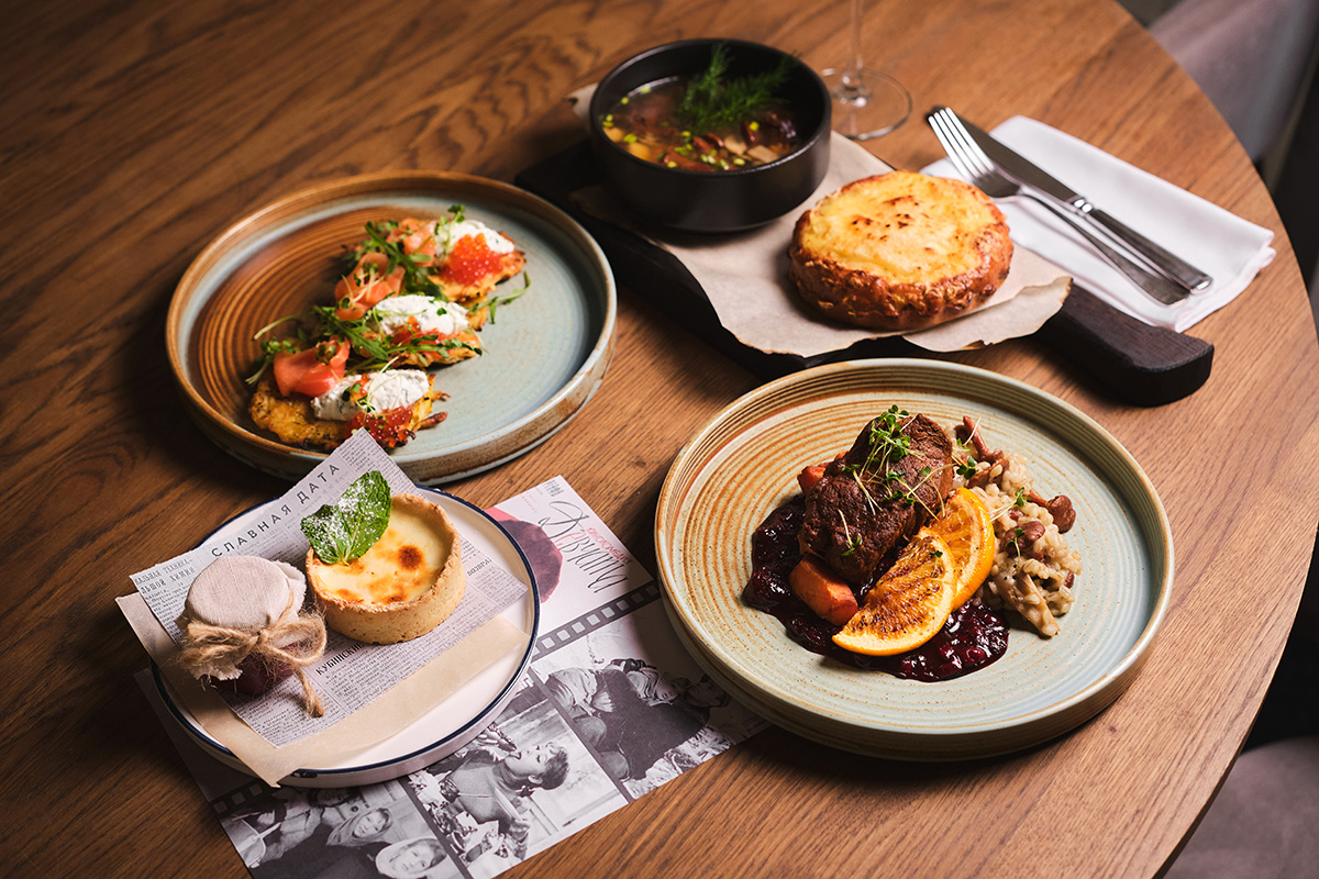 Сет вдохновлён атмосферой фильма Девчата – тёплой историей о жизни в леспромхозе, простых людях и северной кухне. В этой картине еда – не просто фон, а часть характера героев. Главная героиня, Тося Кислицына, повар по призванию, а её знаменитый монолог о блюдах из картофеля давно стал культовым. Именно эта гастрономическая линия легла в основу сета. Грибной суп – отсылка к таёжной и лесной тематике фильма. Картофельные оладьи – прямое напоминание о той самой сцене с картошкой и простой домашней кухне. Томлёная говядина с грибами и ягодами продолжает тему северных продуктов и вкусов. А чизкейк с вареньем – современное прочтение советского домашнего десерта. Сет собран из продуктов, которые ассоциируются с лесом, деревенской кухней и атмосферой 60-х – той самой, за которую до сих пор любят этот фильм.