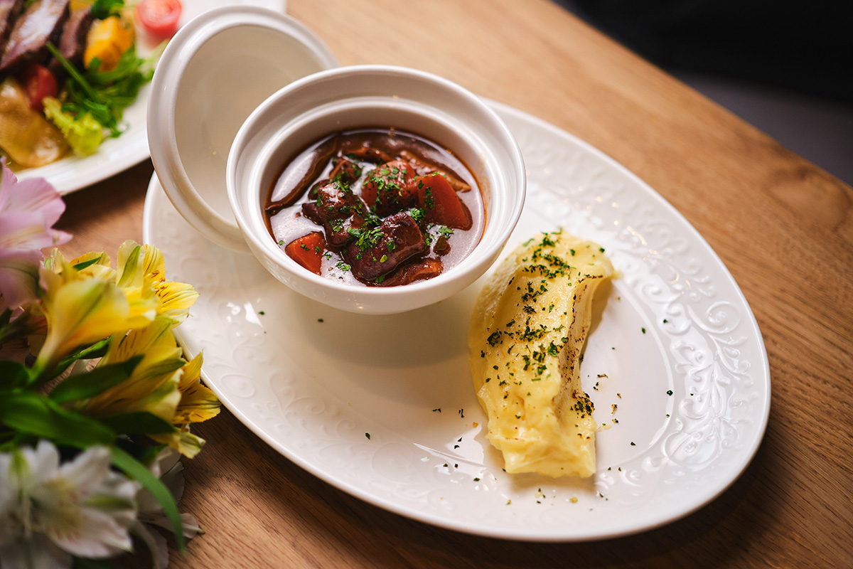 - Беф бургиньон с картофельным пюре по-французски