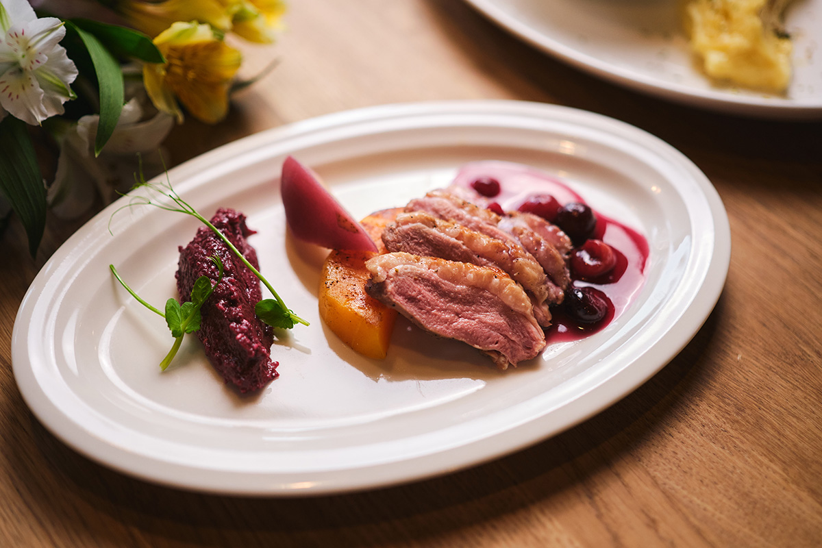 - Филе утки с карамелизированной тыквой и пряной грушей