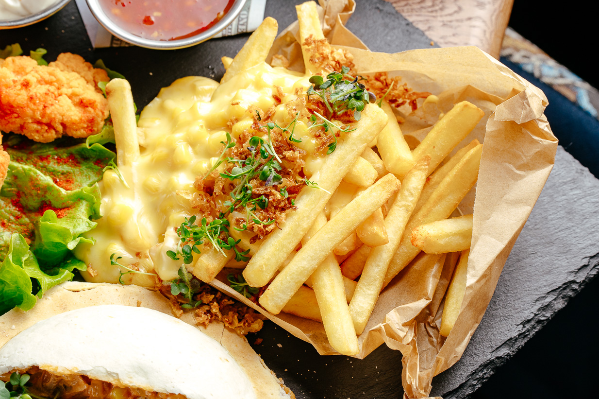 - Хрустящая картошка фри с кремовой сладкой кукурузой