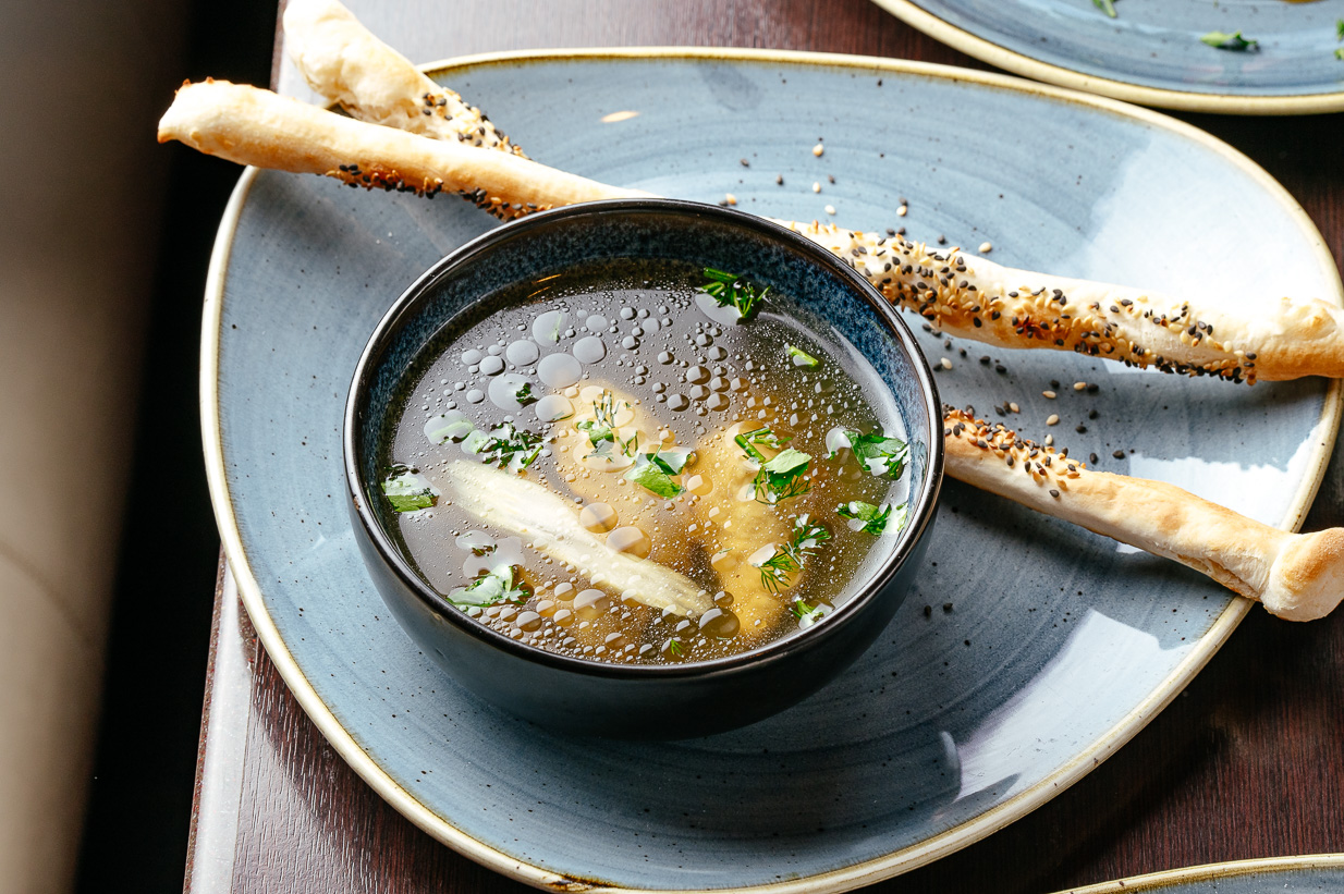 - Бульон "Консоме" с кнелями и гриссини