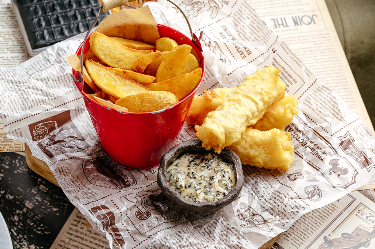 Фиш энд чипс в газете – уличная еда докеров, которую Артур хрумкает у стойки.