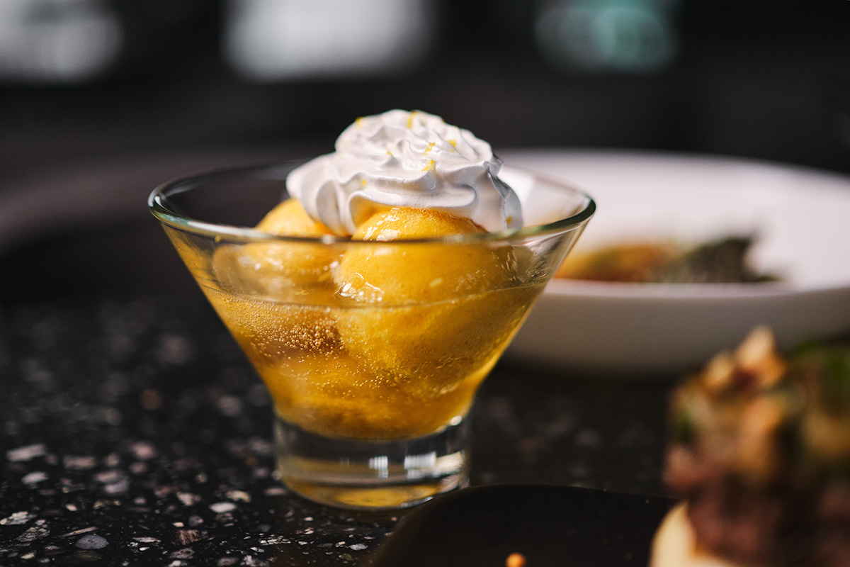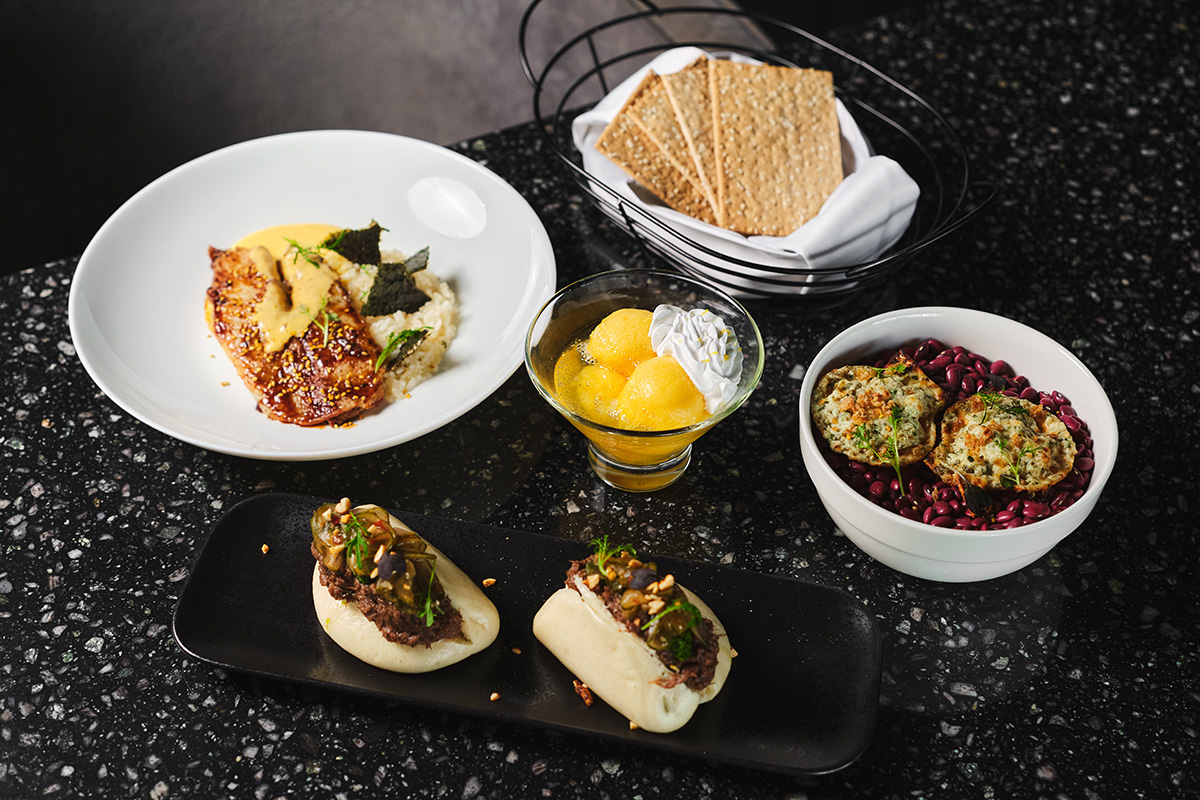 Тилапия с рисом жасмин, голландским соусом, кунжут юдзу — подлинное блюдо с борта: чистота, ясность, ни одной лишней ноты. Булочки Бао с томленой говядиной, мятным соусом и арахисом чили — интерпретация классовой драмы. Говядину подавали как финал ужина, не зная, что это станет финалом всего.