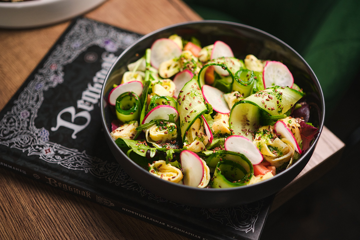 - Зеленый салат с сырным омлетом из трактира "Под задумчивым Драконом"