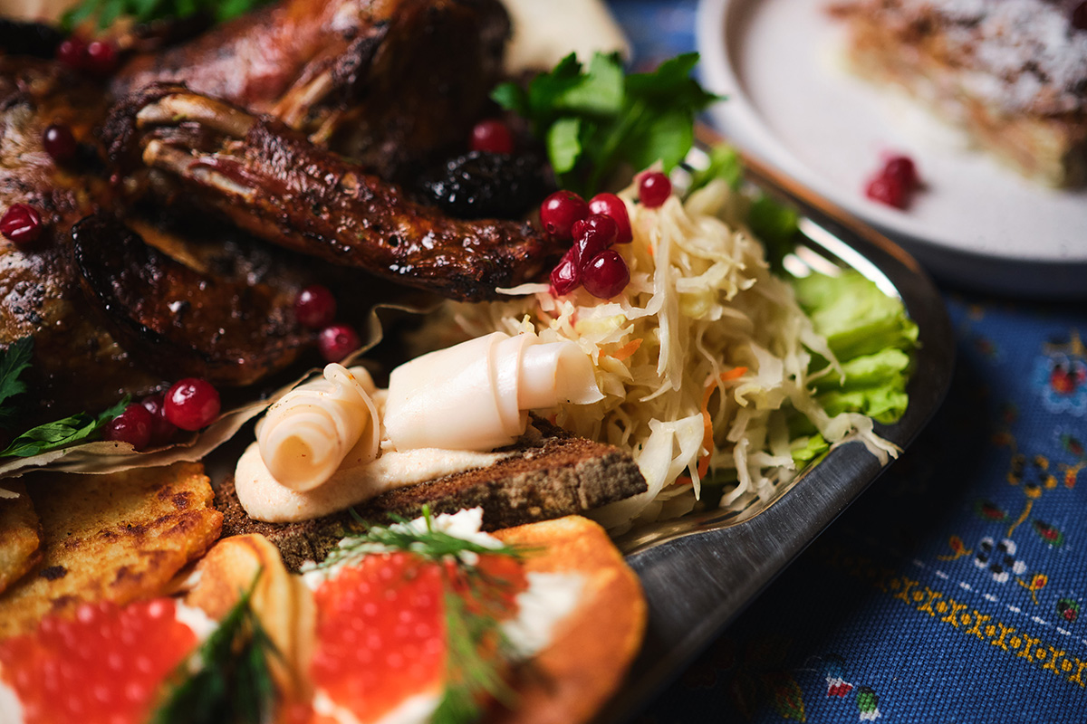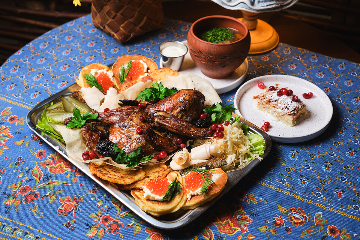 Этот сет – не просто еда. Это билет в 60-е, где пахнет квашеной капустой, жареной уткой и свежими блинами. Где на столе обязательно есть сало с хлебом, а Наполеон готовят по бабушкиному рецепту.